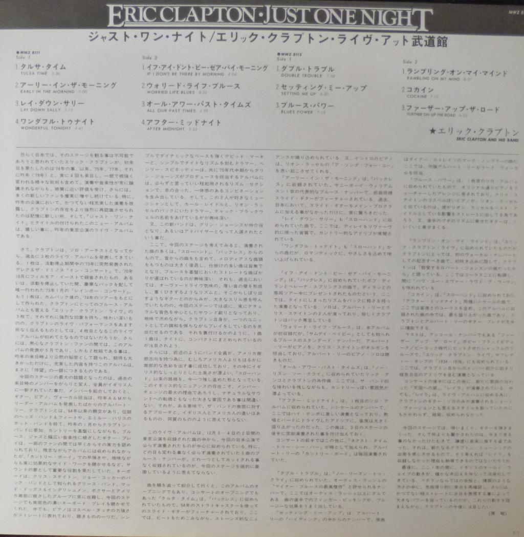 "Just One Night" - двойной концертный альбом Эрика Клэптона, записанный в токийском зале "Будокан". Все хиты мастера белого блюза, включая лирическую "Wonderful Tonight" и прославленный кавер на Джей Джей Кейла "Cocaine"!